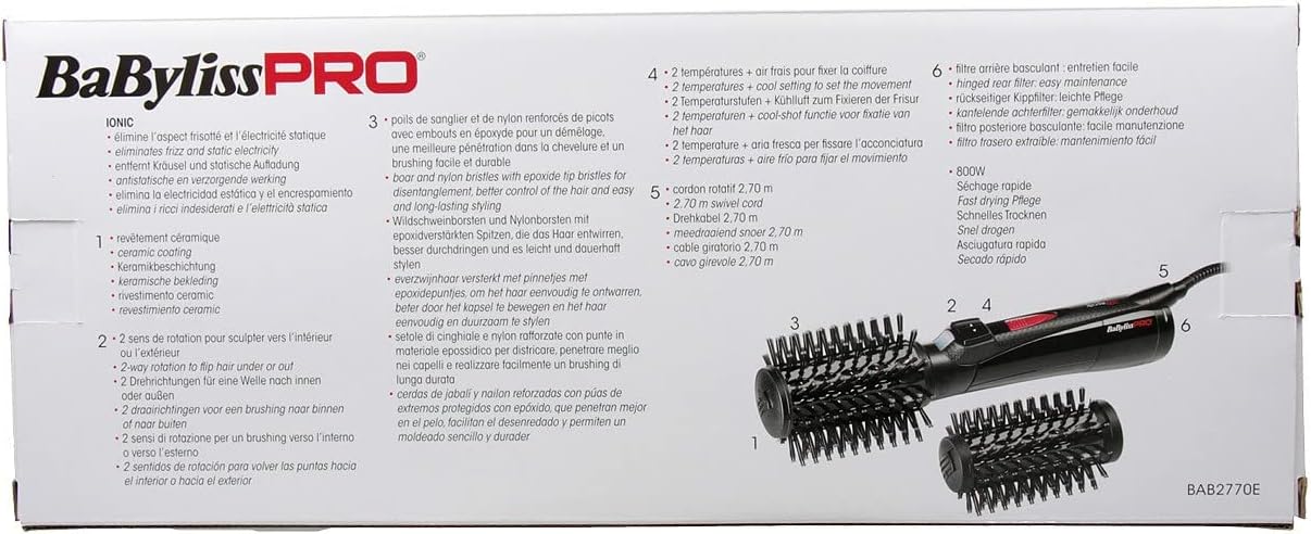 La brosse professionnelle soufflante rotative ROTATING 800 de BaBylissPRO: une puissance parfaite de 800W pour donner du volume à la chevelure. Sa technologie ionique intégrée permet d'éliminer l’aspect frisotté et l’électricité statique.